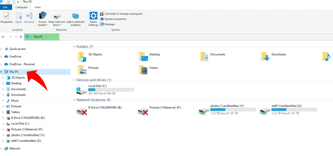 Locate the Mapped Drives: In the File Explorer window, navigate to "This PC" or "Computer" in the left-hand sidebar. Here, you will find a list of drives, including your mapped drives.